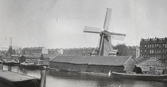 De Kostverlorenvaart is al eeuwenlang een bedrijvige waterroute in Amsterdam. Langs de vaart stonden molens en werkplaatsen waar onder andere krijt werd gemalen — een grondstof voor verf. In de 17e en 18e eeuw was dit gebied een centrum voor ambachtelijke productie, waaronder verfbereiding.